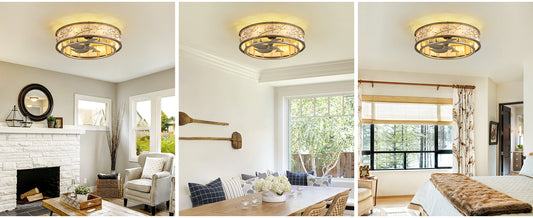 WWM 20'' Flush Mount Caged Crystal Ceiling Fan with Light and Remote