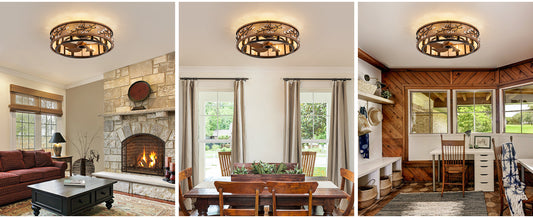 WWM 20'' Low Profile Farmhouse Caged Ceiling Fan with Light