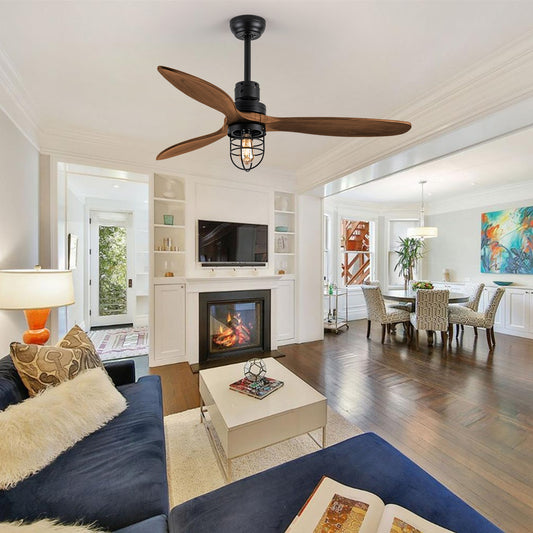 WWM 52 Inch Rustic Outdoor Ceiling Fan with Light and Remote,Wood Ceiling fan
