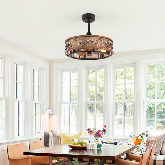 WWM 24" Flush Mount Caged Ceiling Fan with Light and Remote (Bulbs Included)